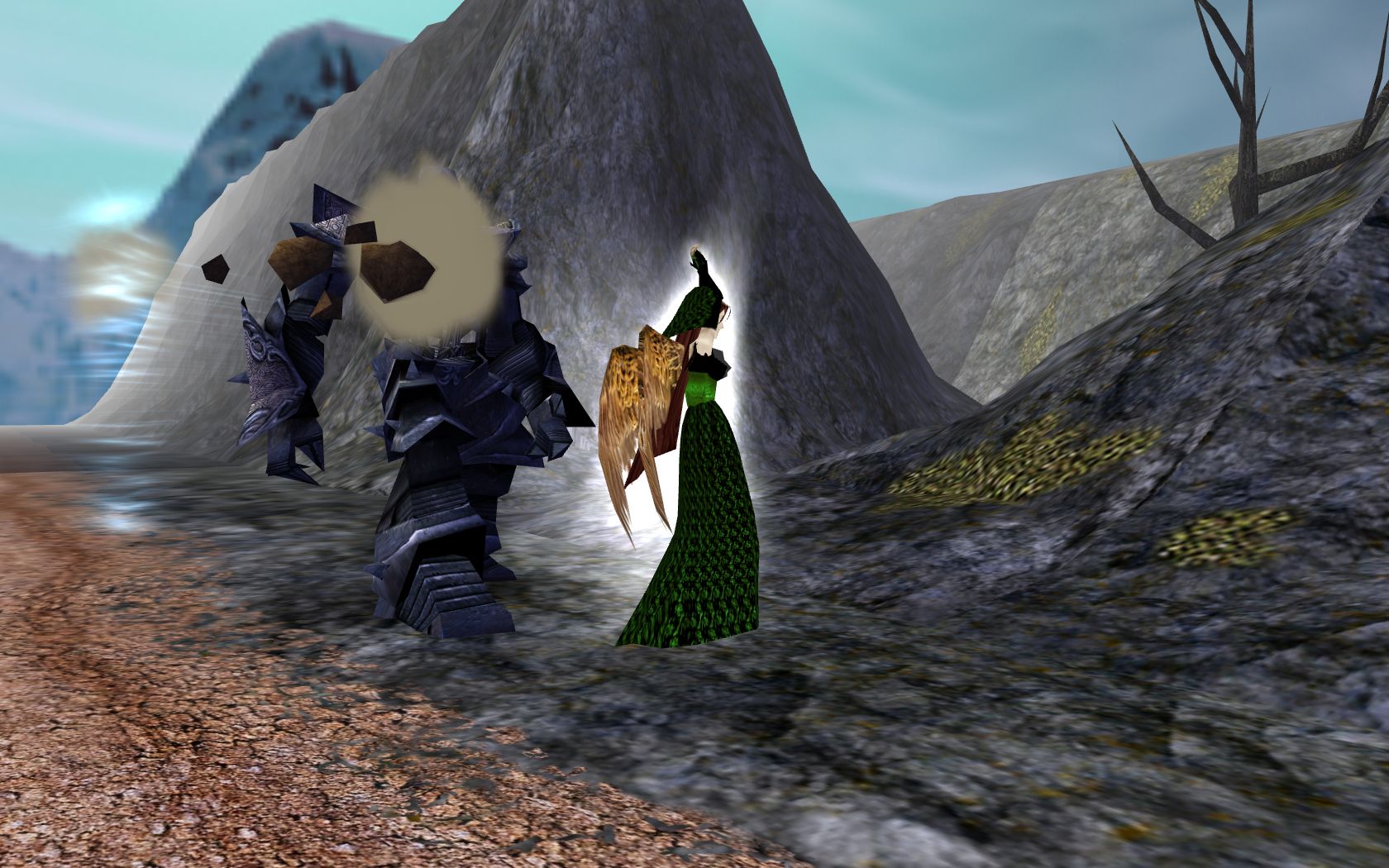 Všude byl až podezřelí klid.All se chtěla vyhnout Ivory a tak projela skrz jezevči jeskyni avšak.Před jeskyni stál podivní sloup a u něj skupina nemrtvích.Alleya neváhala a vystřelila ohnivej šíp přímo mezi zombie.Všechny padly a Alleya pomalu pobídla Hravana - Rauca blíže.Hřebec působil nervózně : pohazoval hlavou, přešlapoval a odfrkával si.,,Lothiane pomoc mi."Řekla tiše , ale v tu chvíli sloupem projela podivná energie.Alleya přitáhla otěže a poodklusala o kus dál.Sledovala s připraveným šípem co se bude dít.
