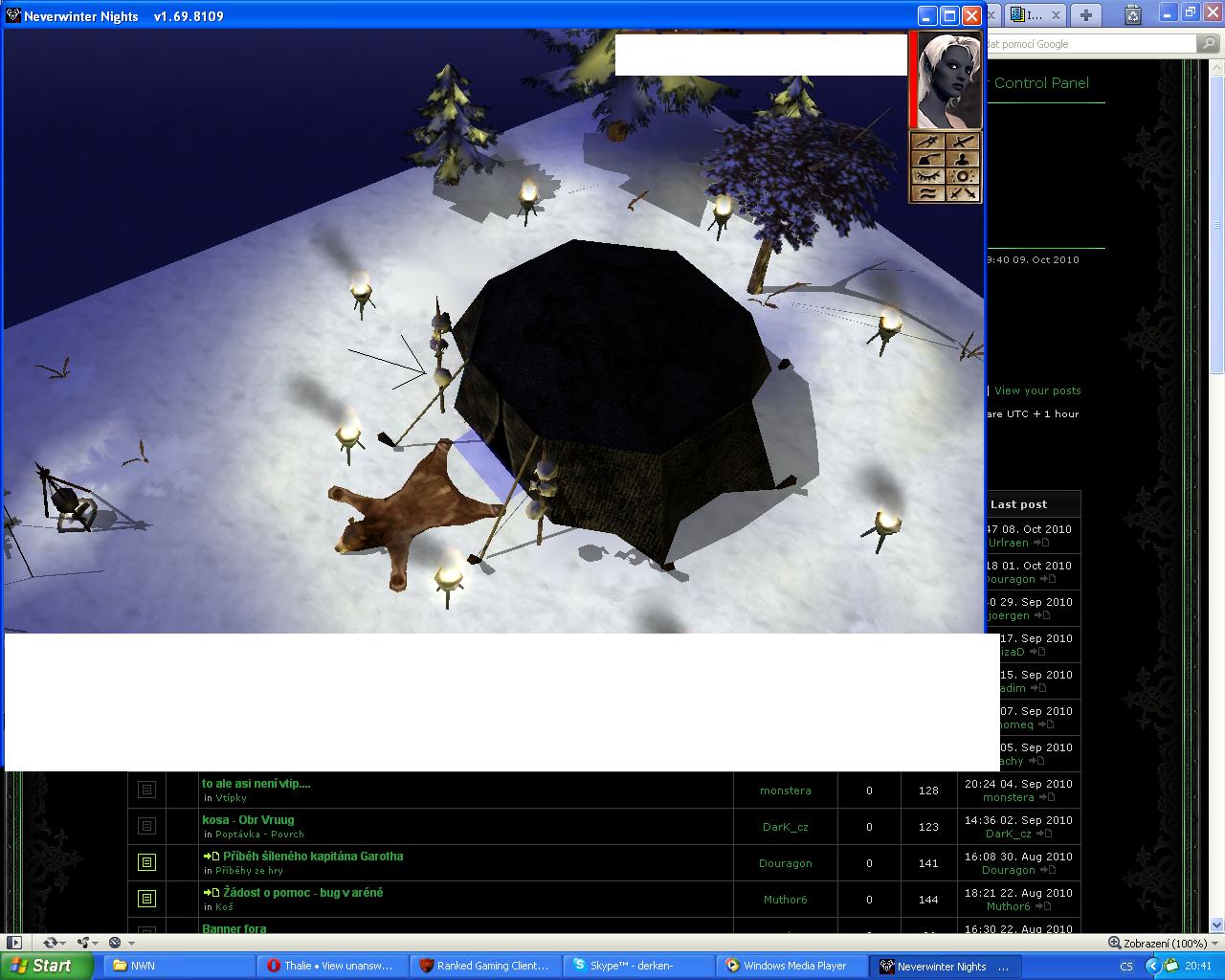 Krynské hory - tábor skřetů. Výlez z velitelova stanu. Prosím o posunutí přechodu o trochu dopřeději. Postava je vhozena do placebu stanu a nemůže ven.