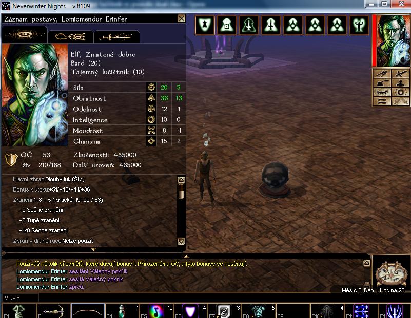 Tak jsem si to jen tak narychlo postavil s tímto equipem: boty: +4AC nahrdelnik: +4AC oblek: +4AC helma: +4AC luk: +4ab maxla dexa o 12 s hastem (nezakouzlen) to da jeste +1AC a +1ab Shrnuto podtrzeno: AC: 54 s ii AB: 52, s hastem 5útoků / AB: 50, s hastem a rychlou střelbou 6útoků. Umění: 30+ Akrobacie: 30 Výcvik: 30+ Nevim, ale me se nezda ze to je spatnej build, ci slabej.