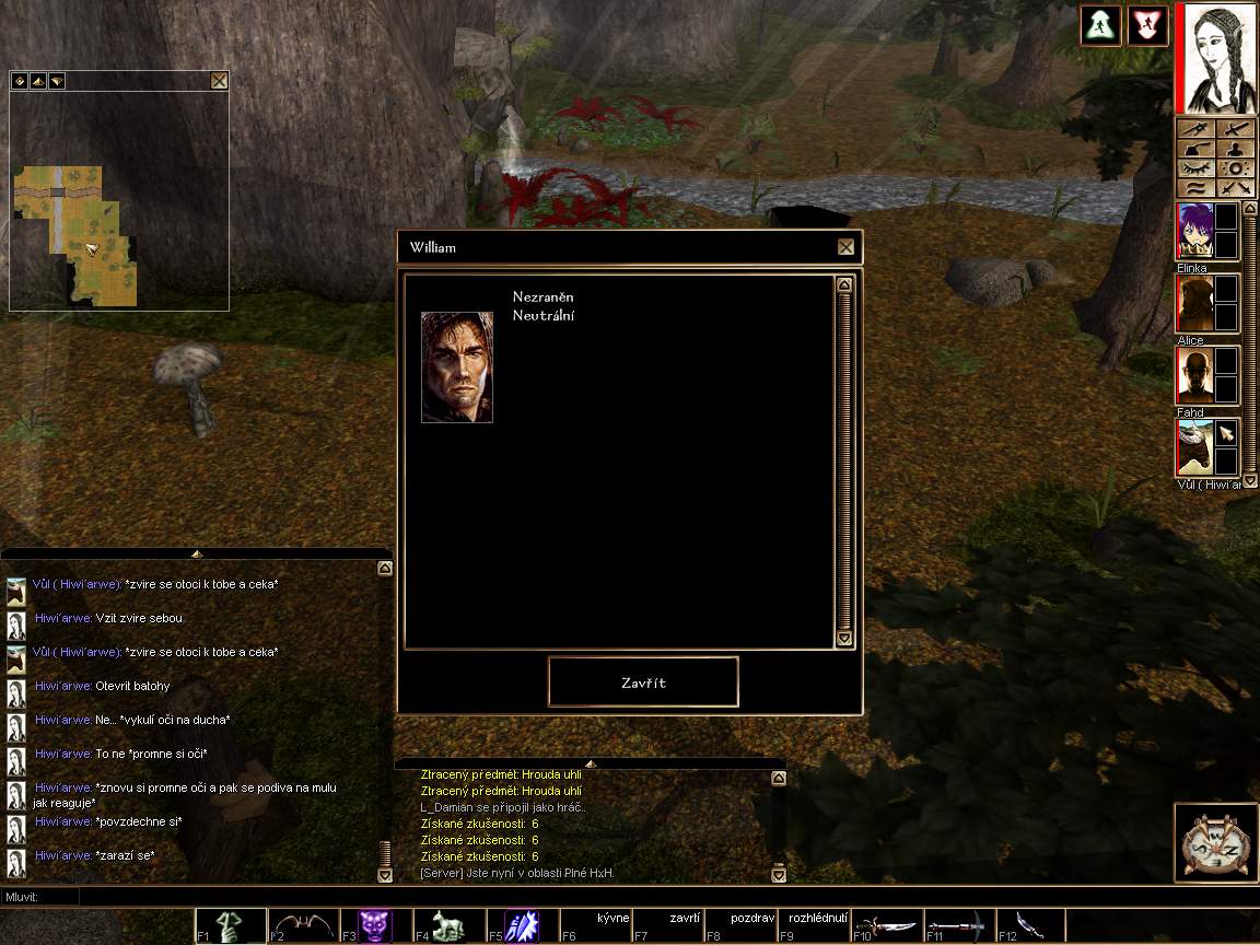Nevím zda to dát jako bug, nebo pro pobavení (IC se asi po desátém zjevení ducha, už postava málem zjevila taky  , odskákal to jeden půlčík  , jako na potvporu v kouzlu "vzhled ducha"). Chodí si tak elfka po lese a co nevidí - prokazatelně mrtvé hráčské postavy trajdají po povrchu. Jednoho jsem posléze kontaktoval a potvrdil mi, že je opravdu mrtvý u ďábla (postava Wiliam). Na střídačku se ti duchové objevovali a mizeli při změnách lokacích. Občas stáli, občas se pohnuli. Zaznamenal jsem jména Xullyr Rrorrok, Xullfryn Zuandar(zrovna čerstvě čerstvě "popravený" létající ježek, ehm), Draug, William. Pro ukázku tři screeny: Attachment: