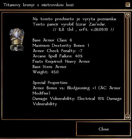 160% titanu a jedna mistrovska kůže mi dala toto : (je to záměr či někde chyba) 160% adamantitu a mistrovska je - takova zbroj je opravdu rozdilna, lepsi a to je to horsi material.