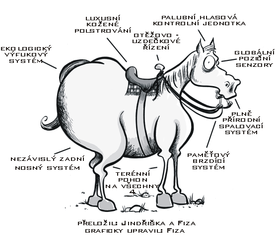A jeden vtípek z téhož zdroje. Kněz prodával svého starého koně. Kupec si koně prohlédl a koupil ho. Kněz ještě kupci zdůraznil, že místo povelu "krok" má říci "pane bože" a místo "stůj" má říct "amen". Tak sedl muž na koně a řekl "pane bože" a kůň se rozešel. Muž řekl znova "pane bože" a kůň začal klusat. To se mu líbilo. Řekl to ještě několikrát a kůň se rozběhl strašnou rychlostí. Najednou se před nimi objevil útes. Muž zaječel "stůj". Kůň nezastavil. Muž křičel všechny možné příkazy, "prrr!", "hoou!", pokusil se koně stáhnout zpátky, ale nic ho nezastavilo. Pak si najednou vzpomněl a zaječel "Amen". Kůň se zastavil těsně na okraji, dříve než spadli dolů. Strachem zpocenému muži se ulevilo, položil ruku koni na krk a pak řekl "pane bože".